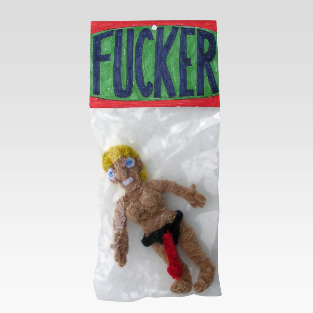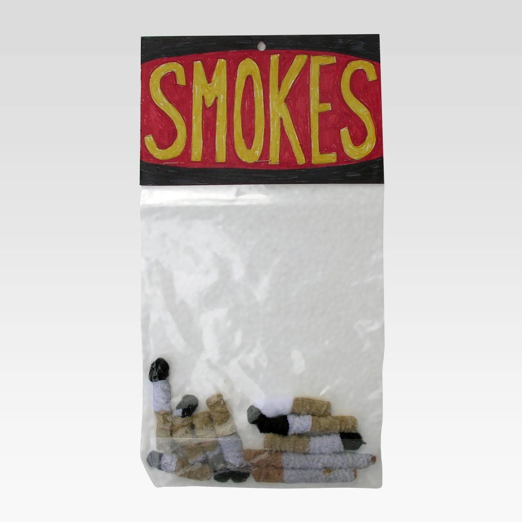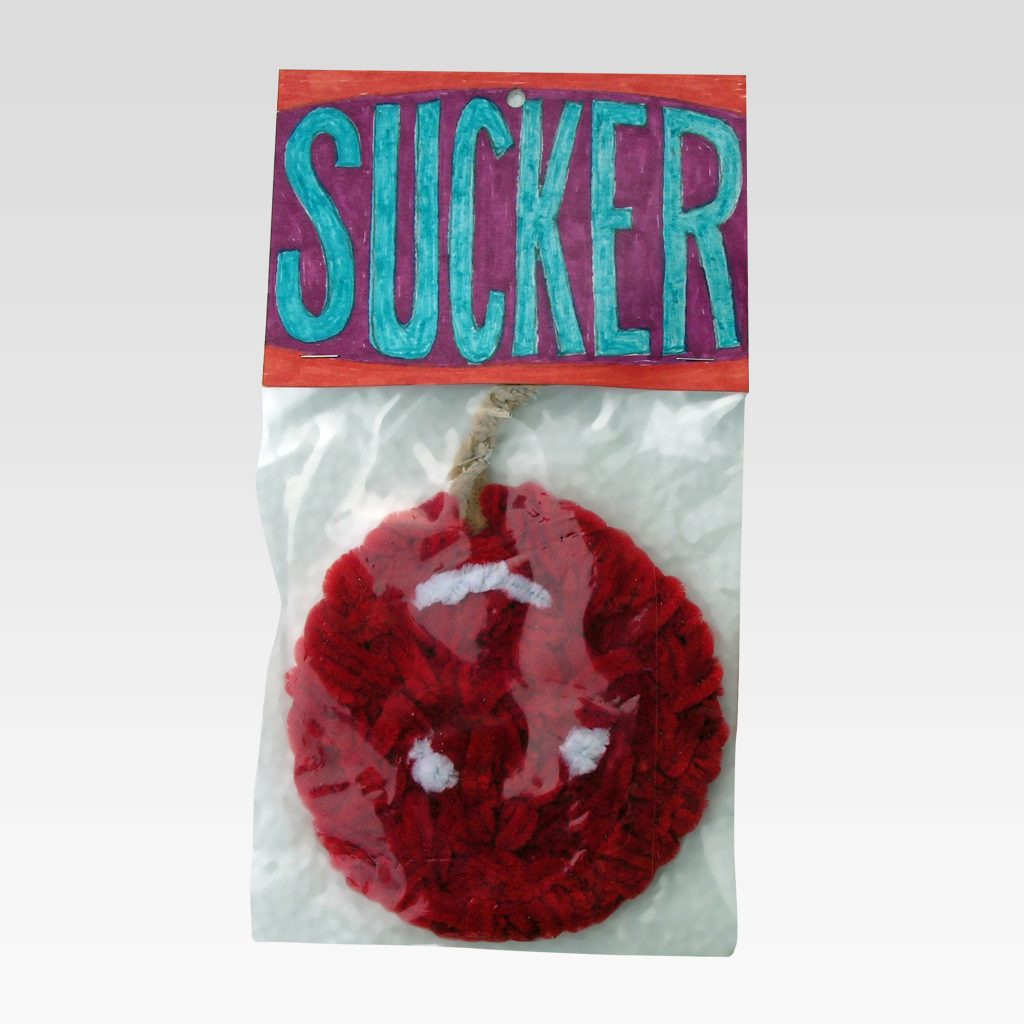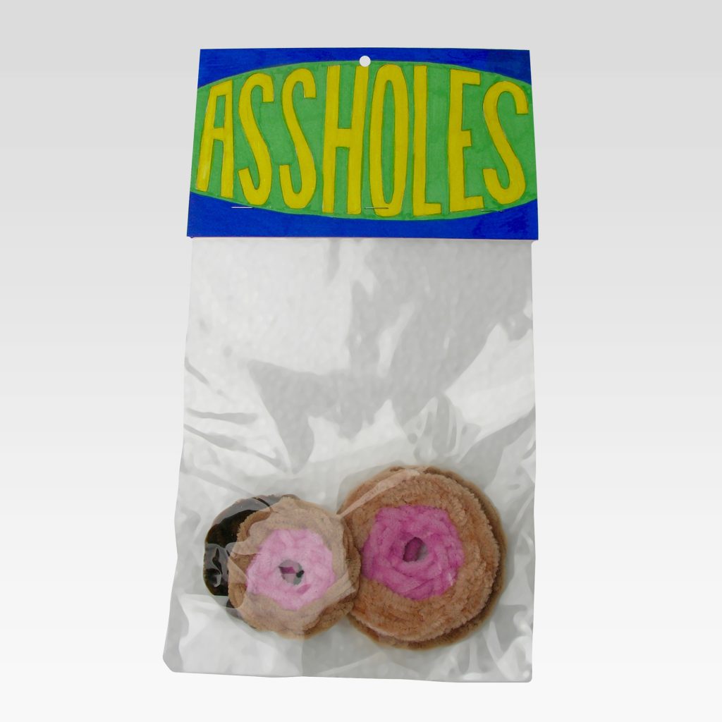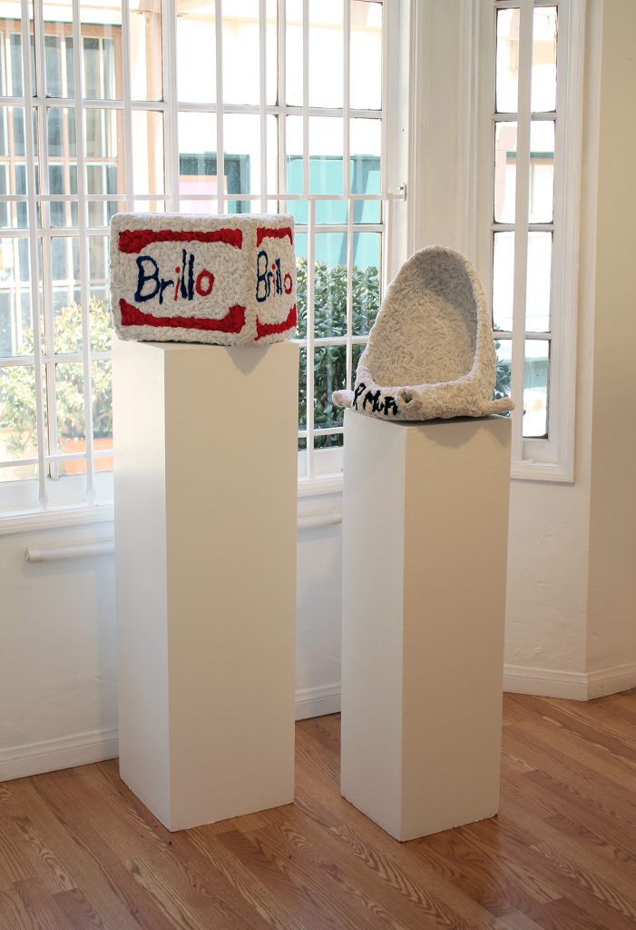 While consumer culture remains central to Porcella’s work, the absurdity of the art business also appears throughout the exhibition. Art trope avatars are apparent in Patron, Critic, Dealer, and Artist, where the sale of cheap merchandise is conflated with the sale of serious art, revealing the internal dialogue artist is faced as both the facilitator and inhibitor of their own work.