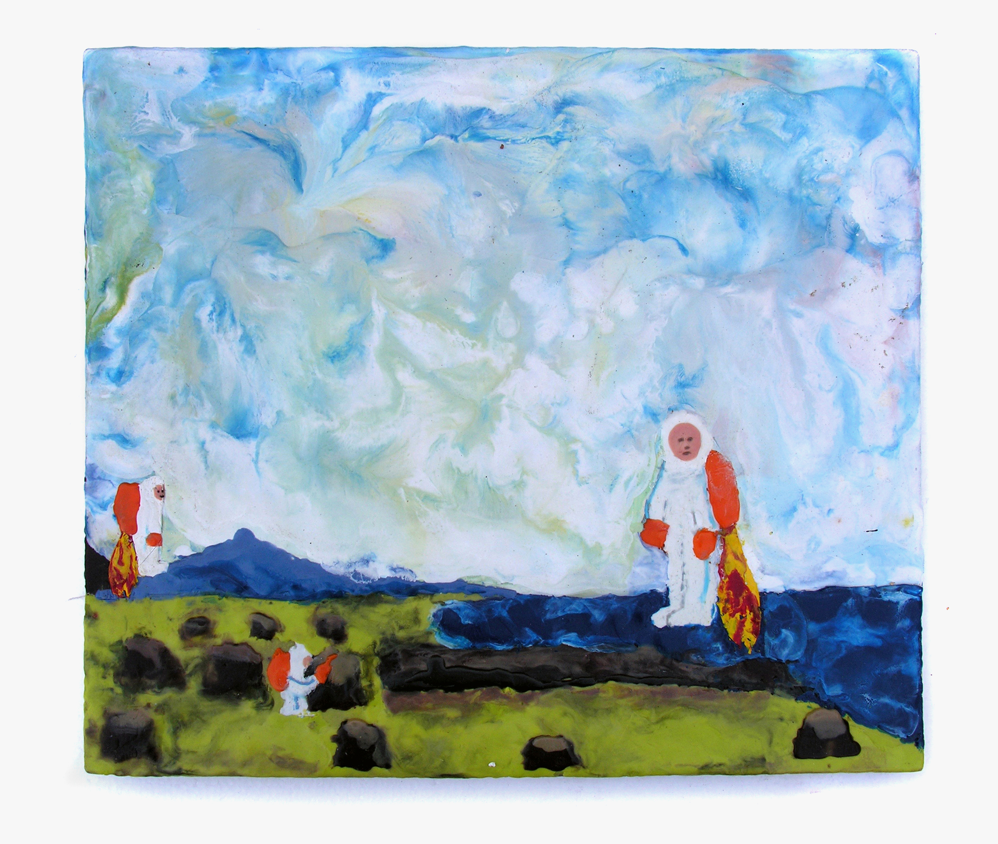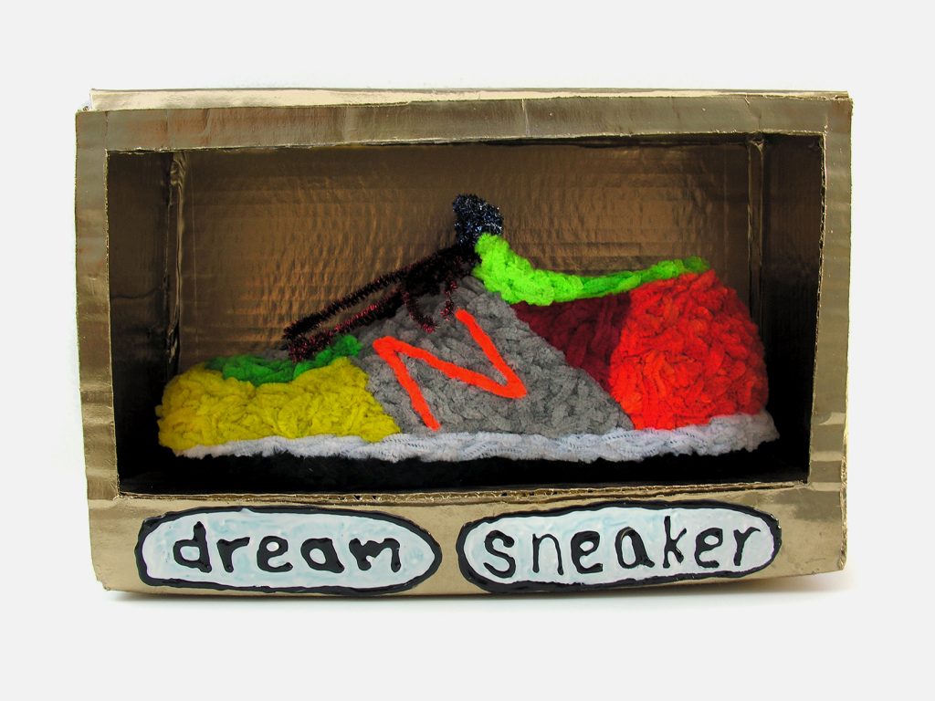 Porcella’s awkward and comical representations conjure a formative, more innocent time. Vivid recreations from his memories are commodified, including shoes that were stolen, pure air from his childhood, and his unrealized sports career, critiquing consumer culture and the idea that people will sell anything, including their own humanity, to obtain material prosperity.